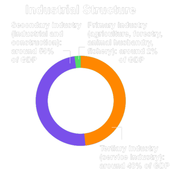 - Primary industry (agriculture, forestry, animal husbandry, fishery): 1.7% of GDP