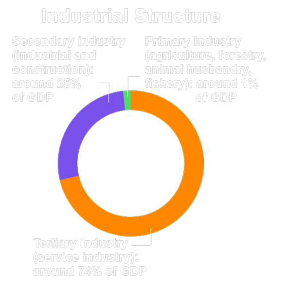 - Primary industry (agriculture, forestry, animal husbandry, fishery): 1.1% of GDP