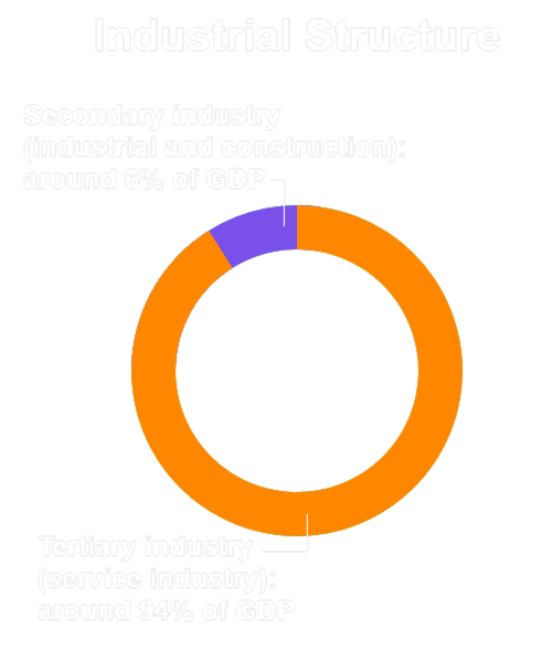 - Tertiary industry (service industry): 92.3% of GDP
