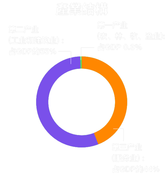 - 第一产业(农、林、牧、渔业):占GDP 0.3%