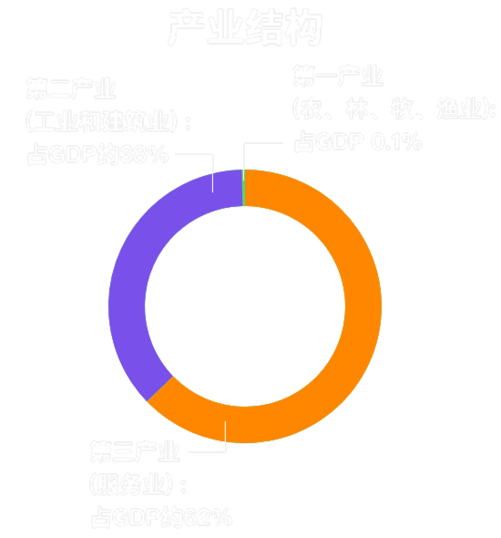 - 第一产业(农、林、牧、渔业):占GDP 0.1%