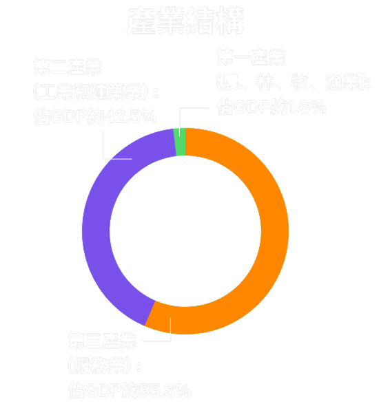 - 第二產業(工業和建築業):佔GDP 44.7%
